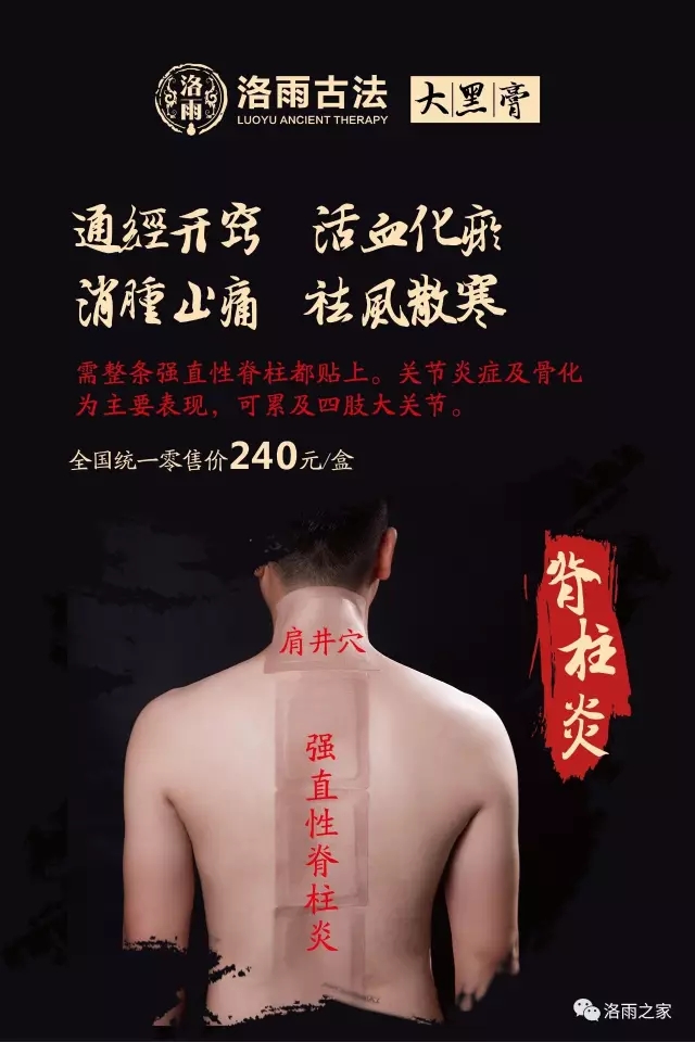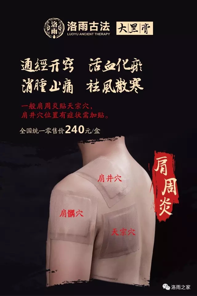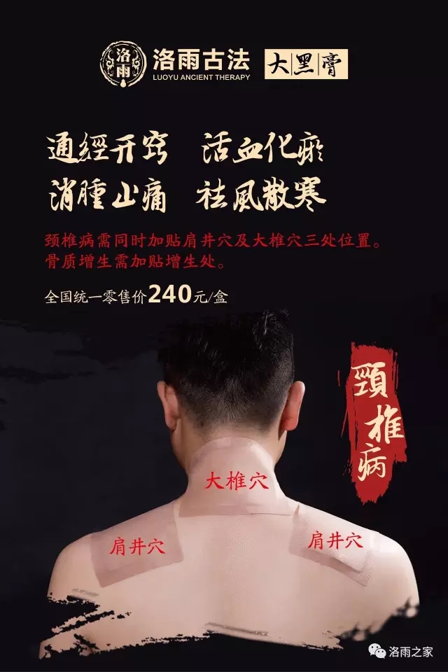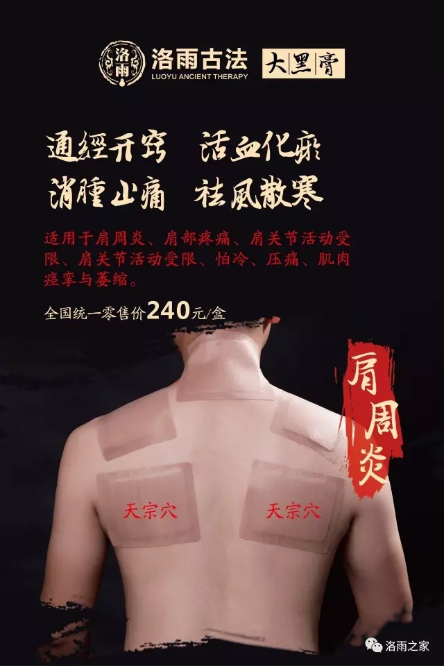 洛雨古法黑膏贴是一款古方传承的黑贴膏,在古方基础上集合了先进的中医科研成果,使其产品药性更加显著。该产品适用于风湿、类风湿、风湿关节炎、滑膜炎、颈椎病、肩周炎、骨质增生、腰肌劳损、腰椎间盘突出、腱鞘炎、关节不利、腰腿麻木、跌打损伤、坐骨神经痛、颈肩腰腿痛等,具有活血化瘀舒筋通络缓解疼痛促进康复保健的作用。